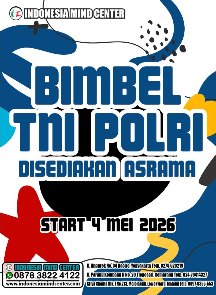 Program ini telah di siapkan sedemikian rupa supaya adik adik dalam belajar dapat menguasai materi secara mudah dan cepat. Seluruh tahapan ujian akan di ajarkan dalam bimbingan ini. Kami LPBB INDONESIA MIND CENTER adalah lembaga resmi yang telah berijin untuk mengadakan bimbingan meraih perwira baik tni maupun polri sesuai pilihan anda.